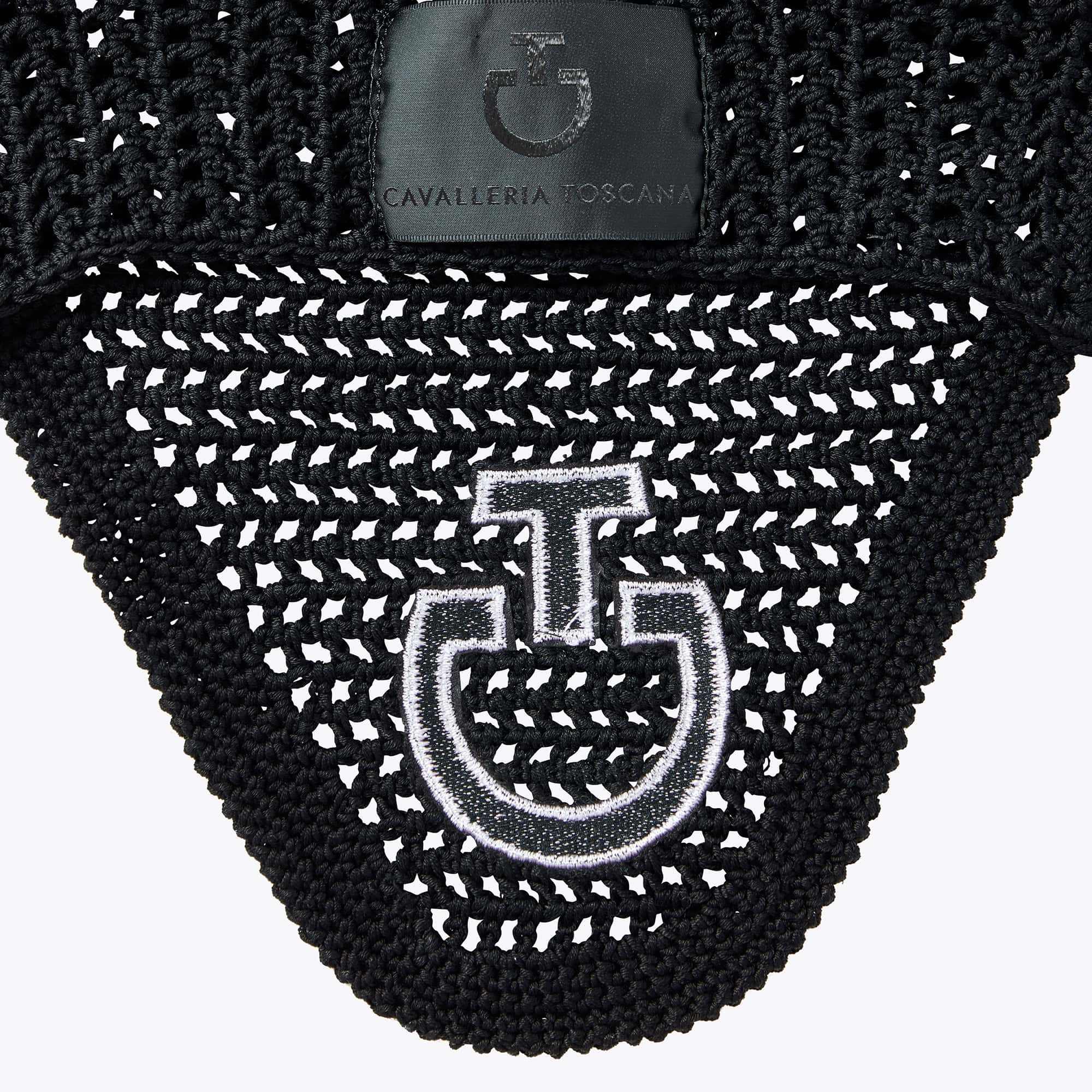 Ce bonnet pour cheval au crochet Cavalleria Toscana est fabriqué en coton égyptien très respirant et confortable, tandis que les oreilles sont en jersey technique extensible dans les 4 sens.