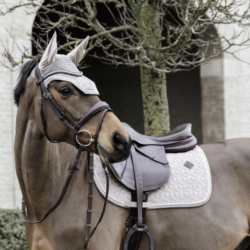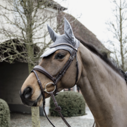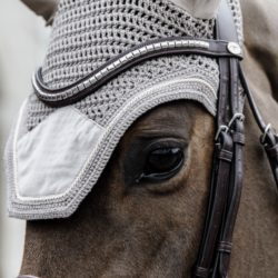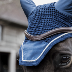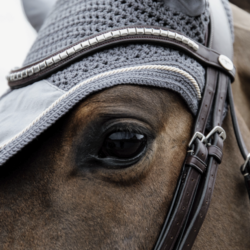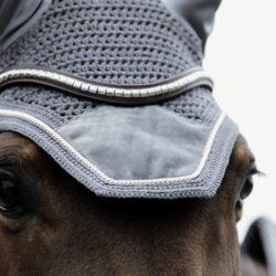 Notre Fly Veil Basic Velvet effet velours côtelé combine le look américain moderne et l’expertise de Kentucky Horsewear. Ce bonnet est crocheté à la main pour une meilleure durabilité. Il possède des détails en velvet très élégants. Le tissu autour des oreilles est extensible et ajusté. Il protège les oreilles du cheval contre les mouches pendant le travail. La partie au niveau du cou est plus longue et ne peut donc pas glisser. Ce bonnet n’a pas de logo visible, le cavalier ou les sponsors peuvent donc broder leur propre logo. Lavage à la main uniquement.