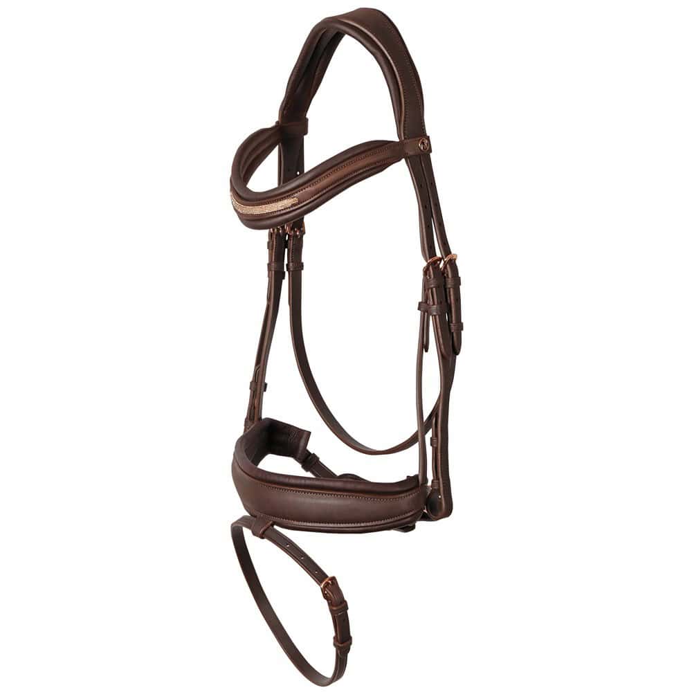 La muserolle Bombastic, légèrement plus large et généreusement rembourrée, apporte une excellente stabilité tout en conservant une grande douceur au contact. Les finitions soignées, associées à des boucleries robustes en acier inoxydable, garantissent une durabilité optimale, même en usage intensif.