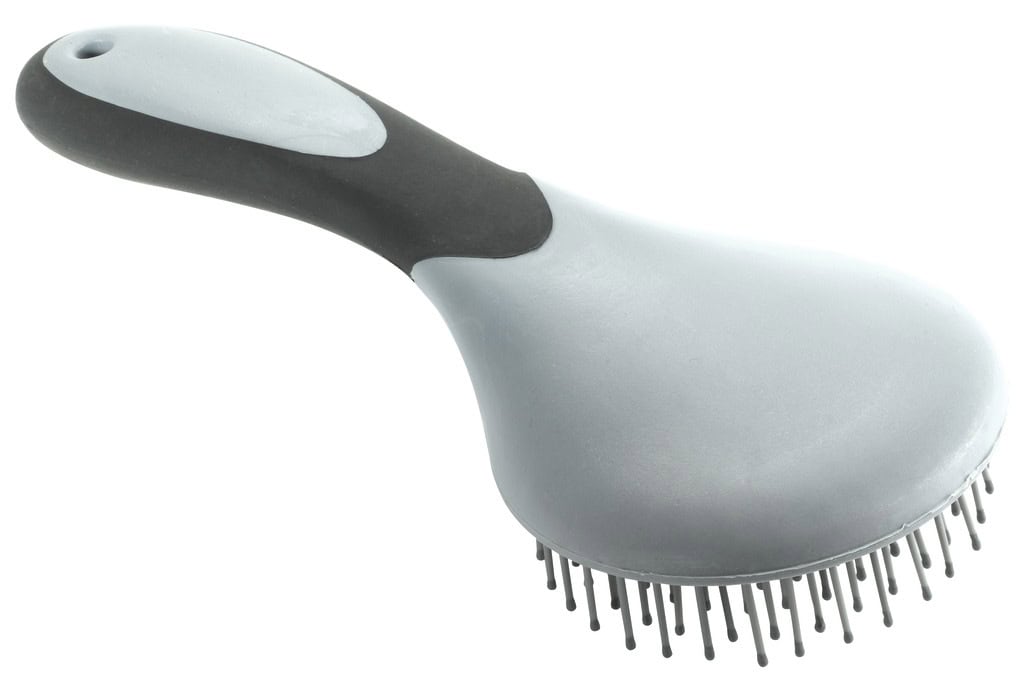 Brosse à large tête ronde en P.V.C. équipée de picots souples et d’une poignée confort antidérapante.