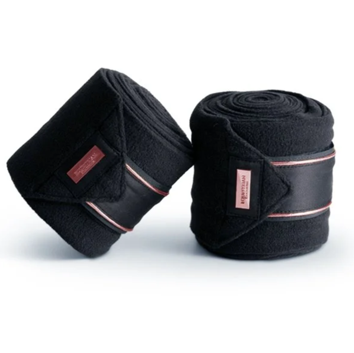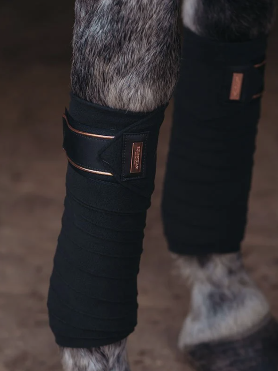 Dark grey high quality fleece bandages with details in rose gold. Decorated with the stylish ES badge. Sold in sets of four. Style with the saddle pad from our Dark Sky collection to complete the elegant look.