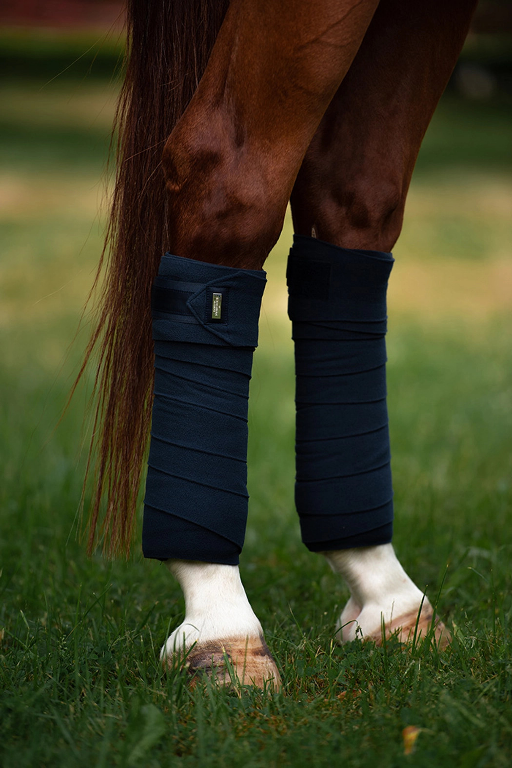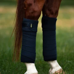 Bandages en molleton bleu marine de haute qualité avec des détails argentés exclusifs.