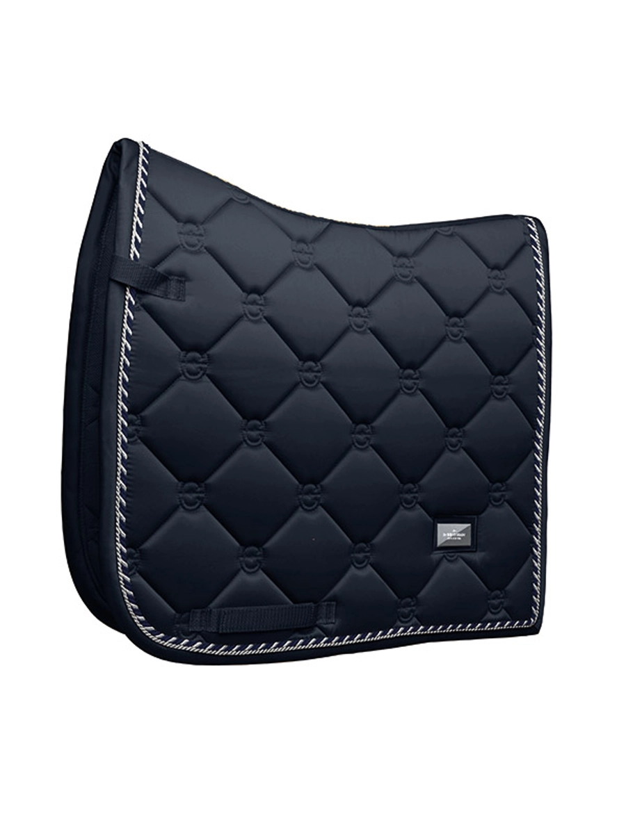 Notre tapis de selle de luxe en bleu marine brillant est parfait pour une journée de compétition ou d’entraînement !