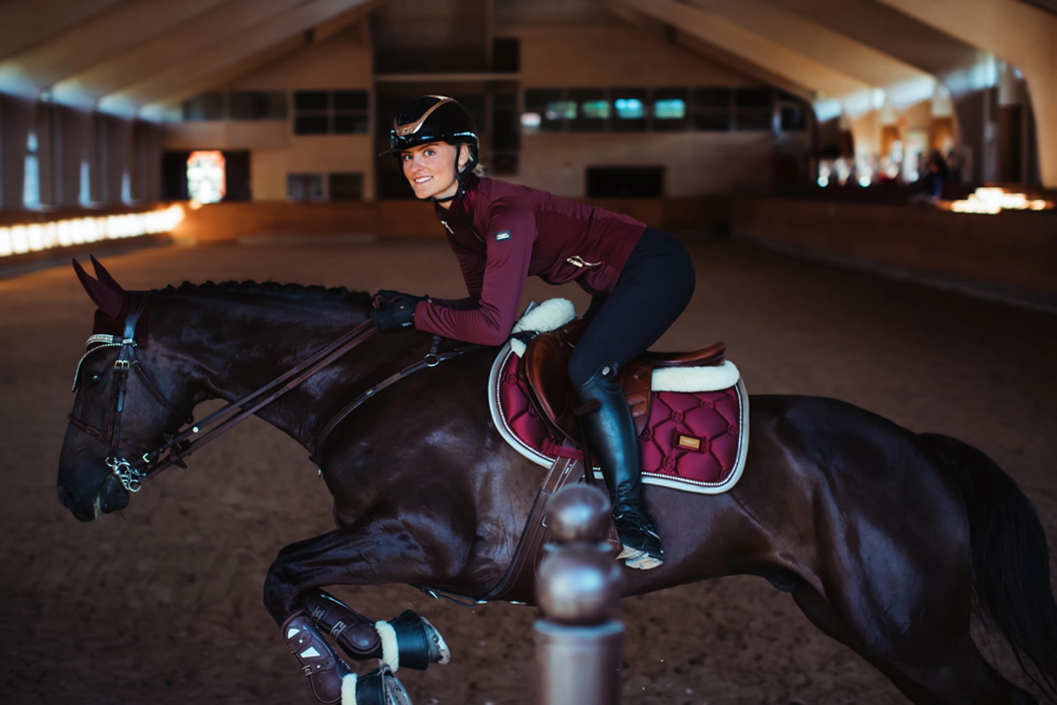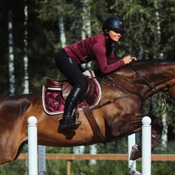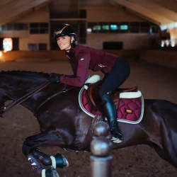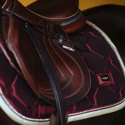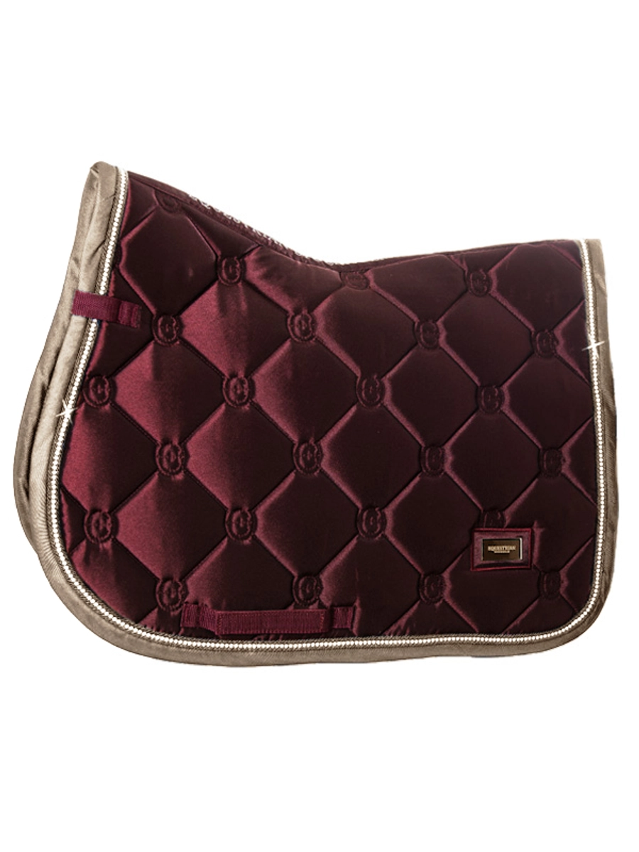 - Tapis de selle glamour dans une nuance romantique de merlot, avec des cristaux dorés scintillants et un passepoil merlot.