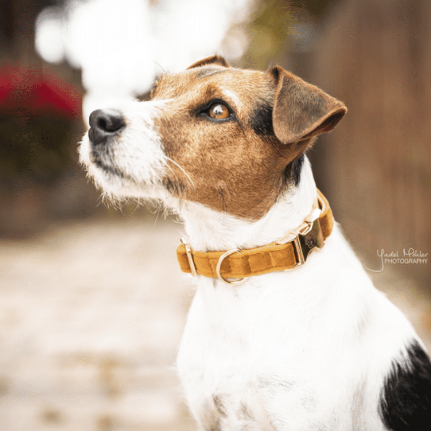 The Dog Collar Velvet features a ring to attach our matching dog lead Velvet. The small hanger with Kentucky Dog Paw logo can be engraved with the dog’s name on the other side. This collar has a very handy clip and is easily adjustable in size.
