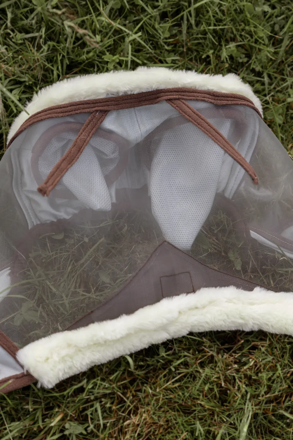 Le masque anti-mouches Skin Friendly avec oreilles protège les yeux et les oreilles de votre cheval contre les mouches et autres insectes sans couvrir le nez. La peau de mouton artificielle sur le nez et autour du front est parfaite pour les chevaux ayant une peau sensible.