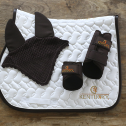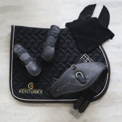 Grâce à la finesse de ses couches, notre tapis de selle offre d’excellentes sensations entre le dos du cheval et la selle tout en favorisant la protection contre les frictions. La forme anatomique s’assure que le garrot est libéré de toute pression. Le logo Kentucky est brodé des deux côtés – il existe aussi une version sans logo. Le tapis de selle n’a pas de sangles pour attacher à la selle mais seulement une sangle en nylon pour passer la sangle. Le liseré en cuir synthétique donne une petite touche élégante et grâce à son design et ses motifs particuliers, ce tapis séduit autant les cavaliers de saut que de dressage ou de complet. Tout comme nos amortisseurs, ce tapis de selle est lavable en machine à 30° (pas de sèche-linge).