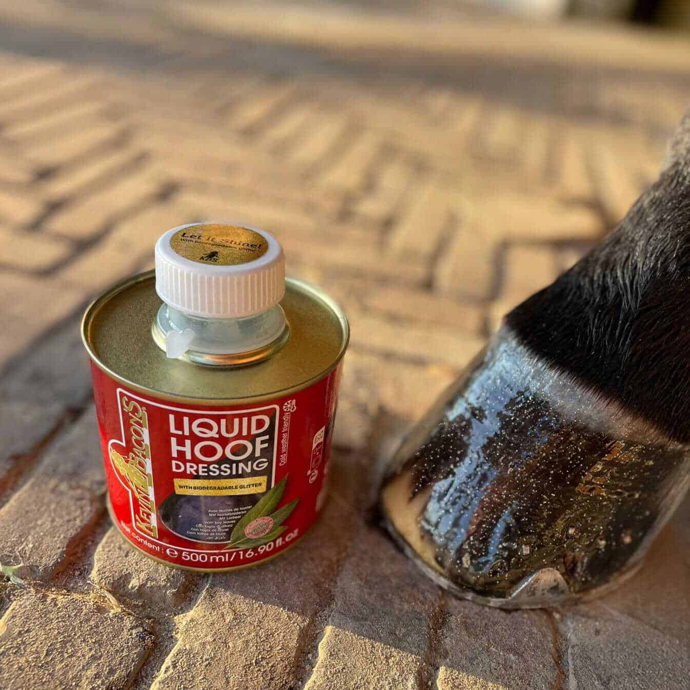 Contrairement aux vernis classiques qui peuvent étouffer la corne, ce soin laisse respirer le pied tout en créant un effet « miroir doré » sous la lumière.