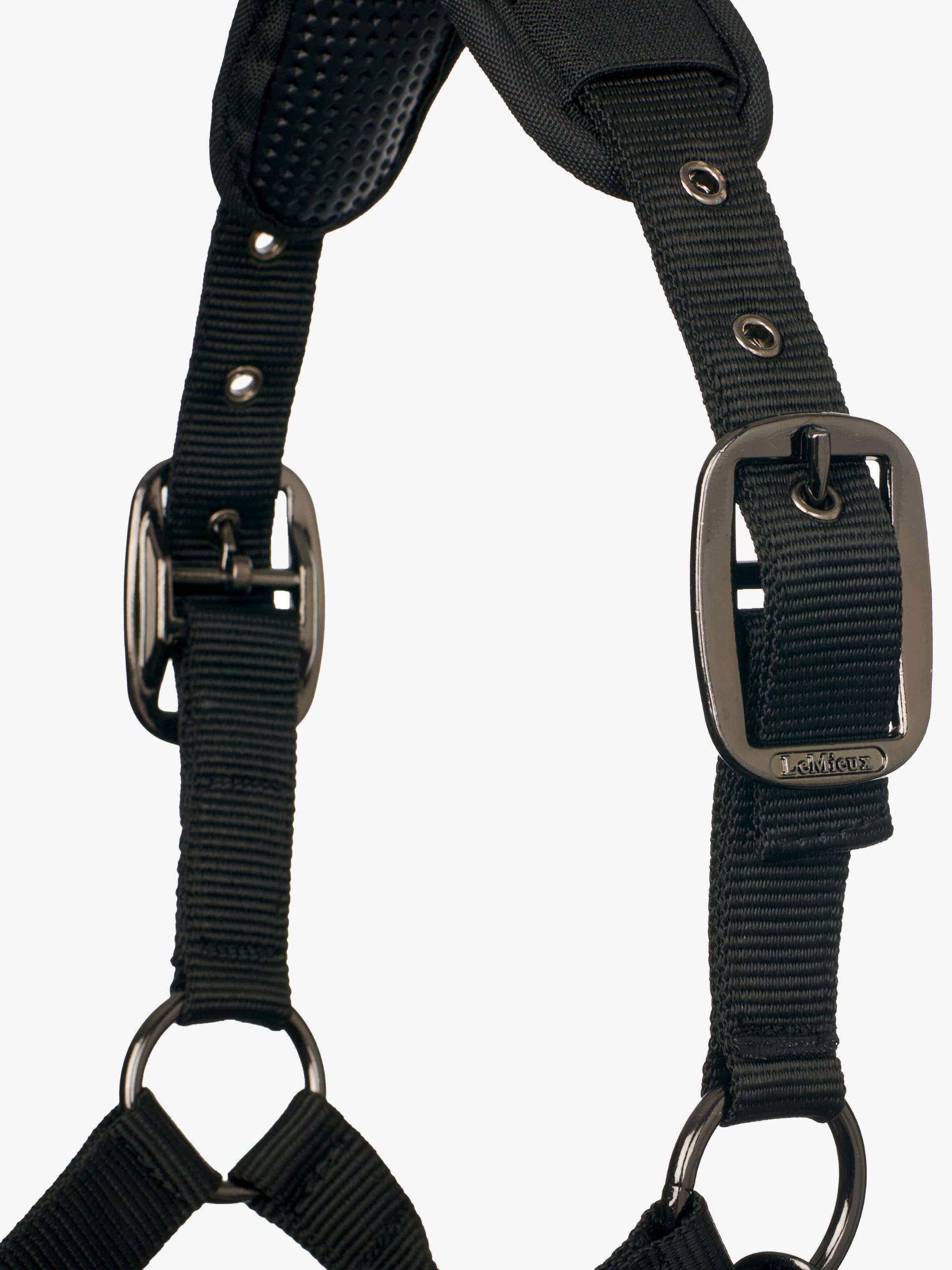 La conception à triple anneau permet de varier le niveau de contrôle et de sévérité, tandis que les doublures de mousse PVC au niveau de la muserolle et de la têtière permettent d’absorber les chocs tout en restant confortables.