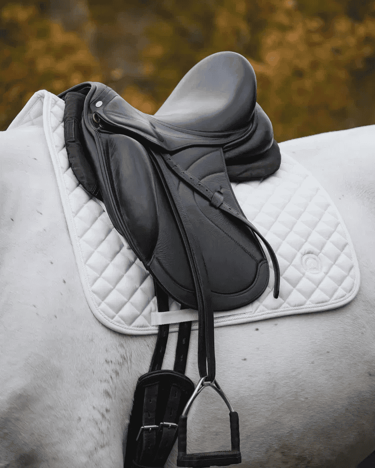 Son matelassage respirant et absorbant garantit une répartition homogène de la pression et évite les échauffements. La coupe ergonomique épouse la ligne du dos du cheval, assurant une stabilité parfaite sans points de pression.