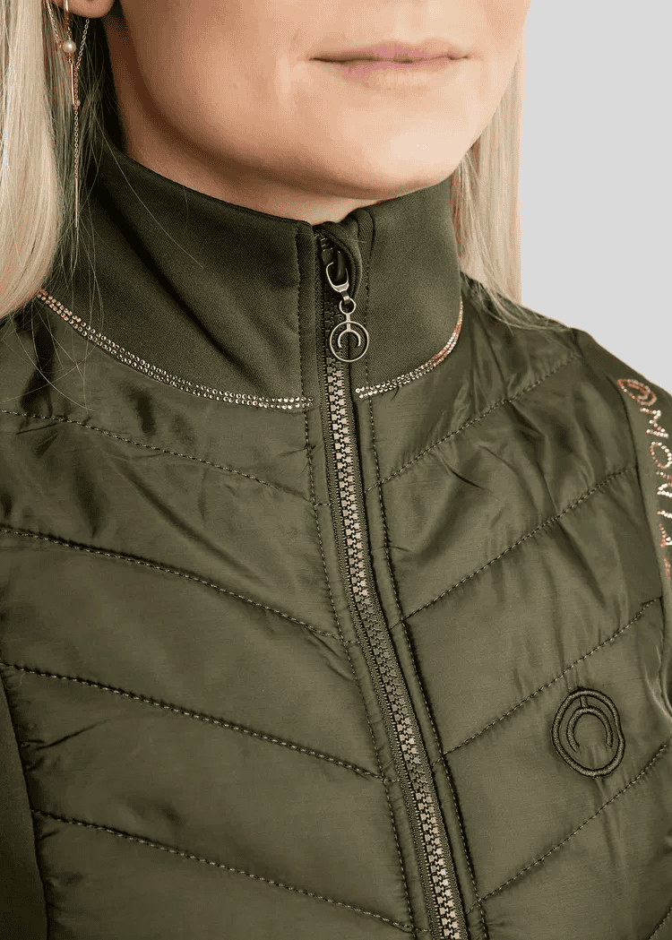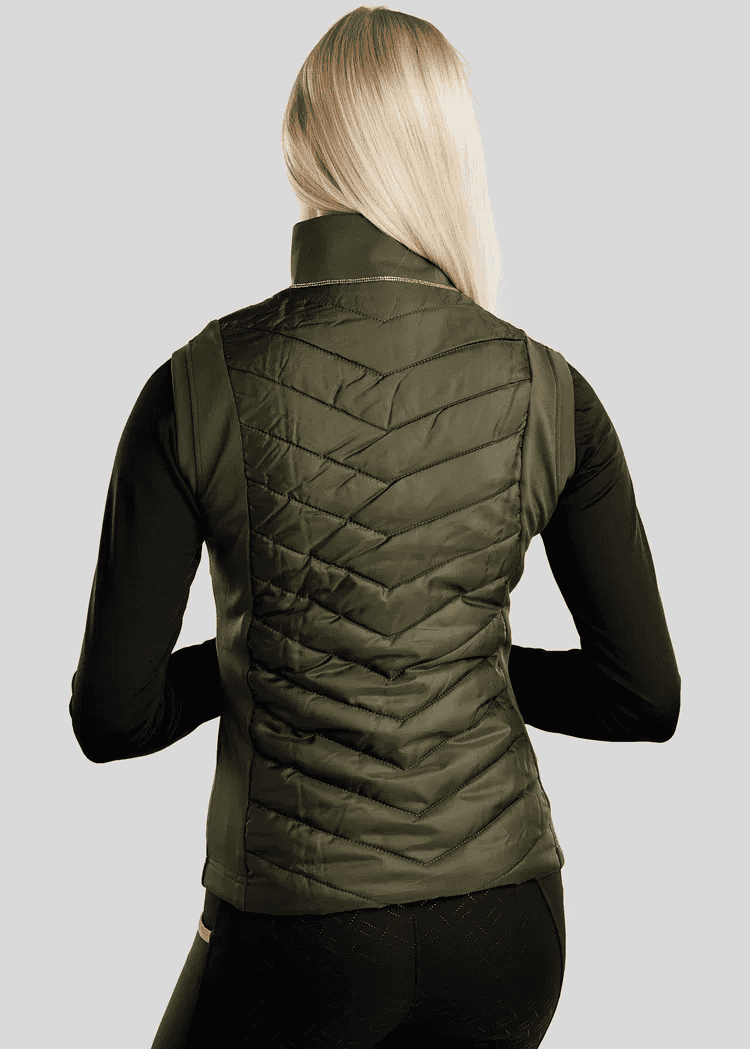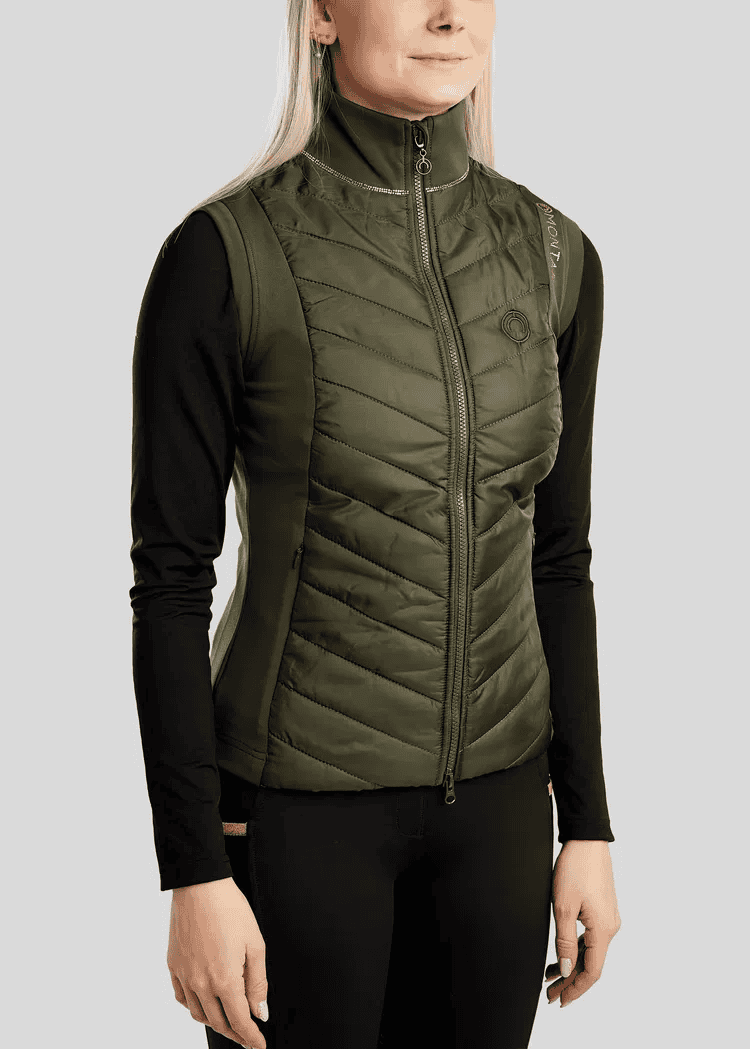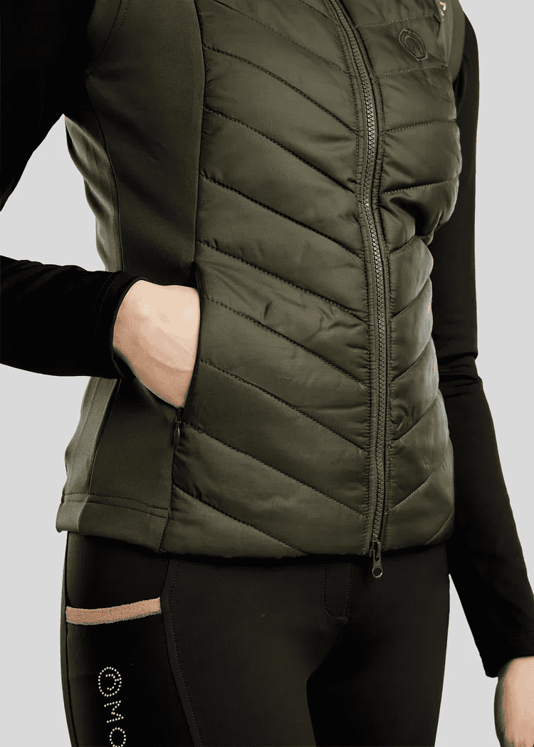 La veste sans manches Montar MoMari Hybrid Olive est une pièce incontournable pour les cavalières qui veulent associer élégance, confort et technicité. Ce bodywarmer hybride est parfait pour superposer sur un pull ou un sous-vêtement technique, offrant une isolation légère et respirante adaptée aux variations de température.