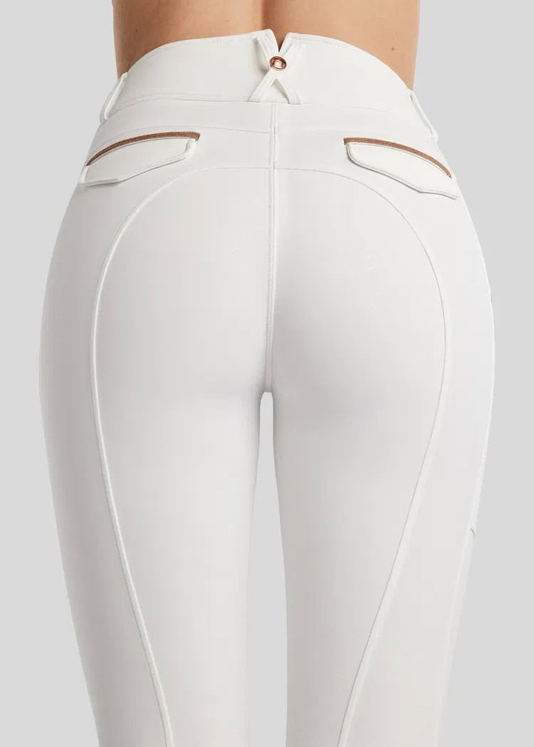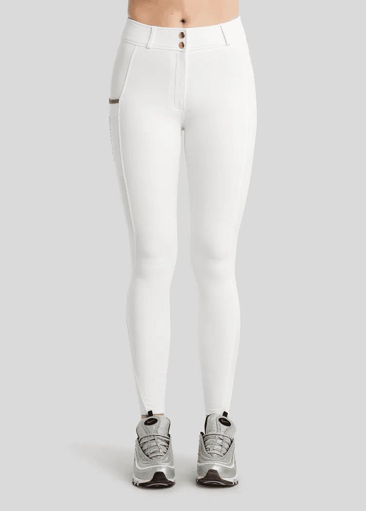 Sa matière stretch innovante garantit un confort optimal et une liberté de mouvement totale, que ce soit à l’entraînement ou en concours. Le Full Grip silicone offre une adhérence maximale en selle, renforçant la stabilité et la précision de votre assiette.