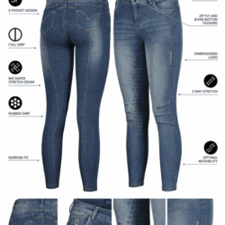 Conçu avec un tissu stretch de haute qualité, ce jean est idéal aussi bien à l’écurie que dans la vie quotidienne. Sa coupe slim met en valeur la silhouette tout en offrant une grande liberté de mouvement.