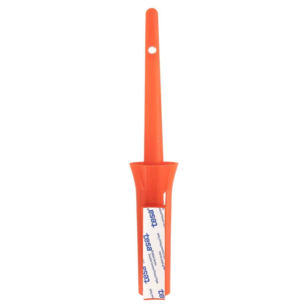 Grâce à sa bande adhésive, la brosse se fixe sur le côté d’un pot d’huile pour sabots