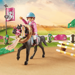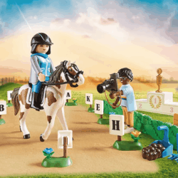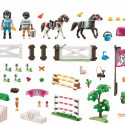 Le set de jeu contient trois personnages, deux chevaux, deux poneys ainsi de nombreux accessoires.