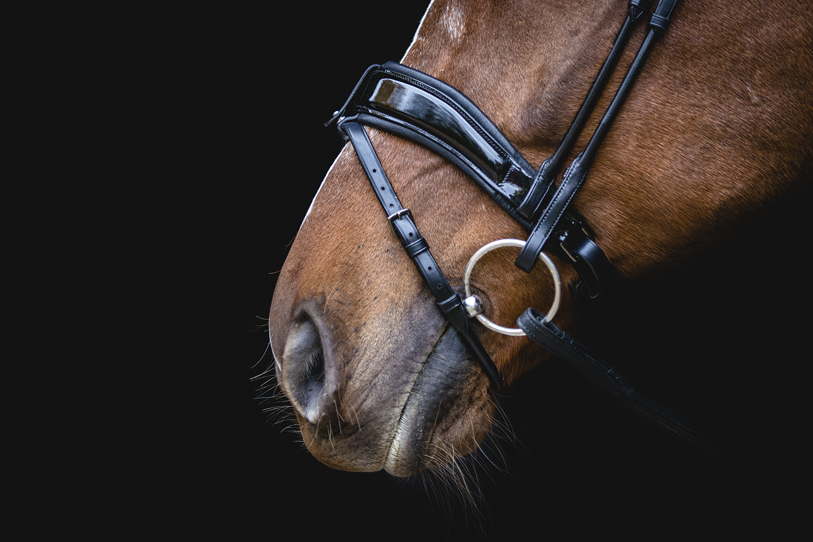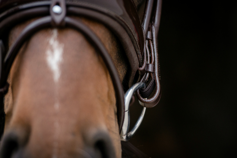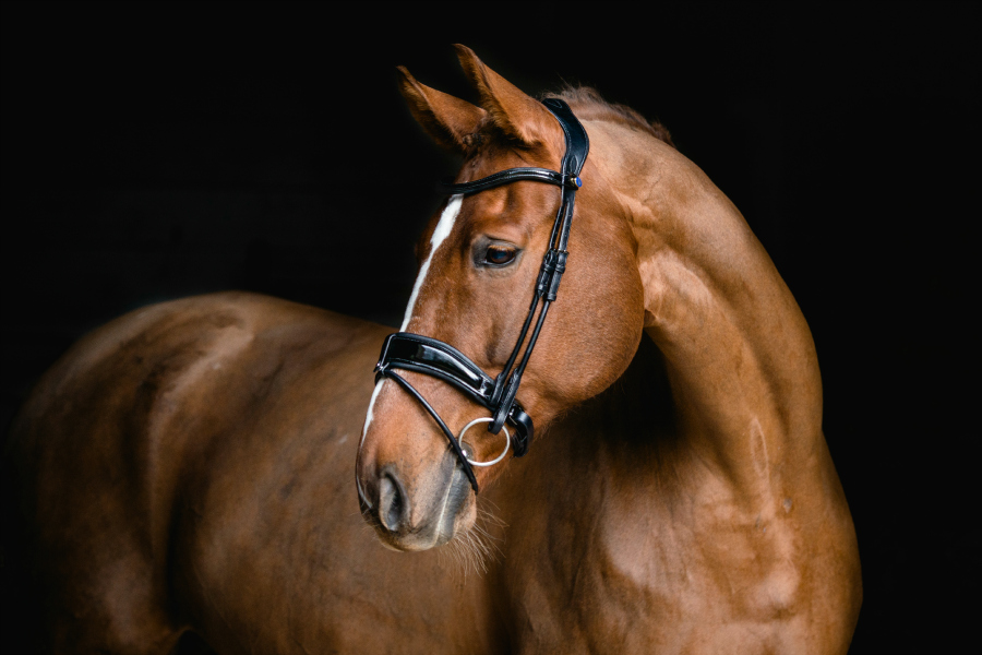 La découpe anatomique et élégante de la muserolle laisse une liberté dans la bouche, autour des joues et au niveau des terminaisons nerveuses de cette zone .