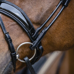 Elle permet un mouvement plus moelleux et confortable de la bride sur le cheval.