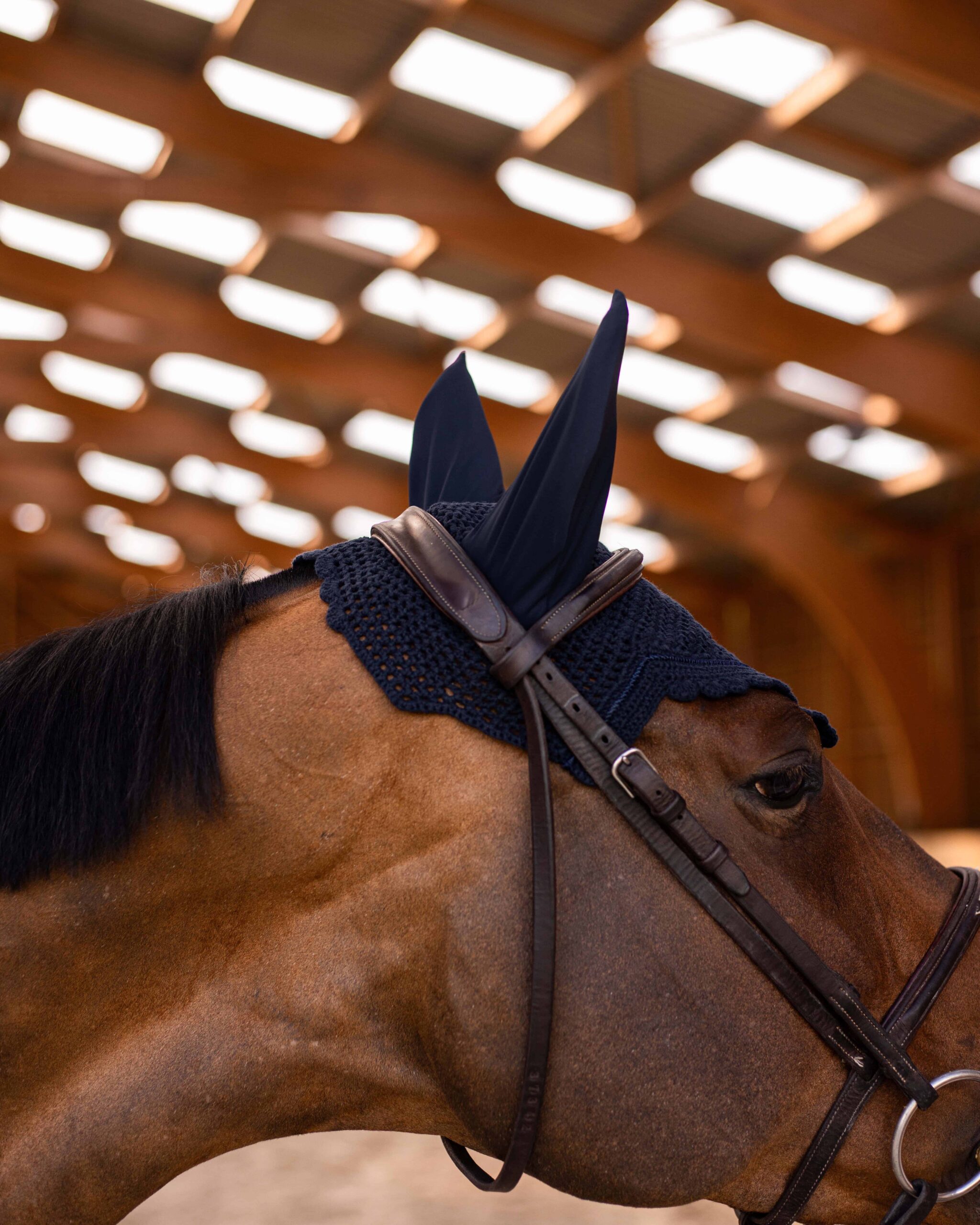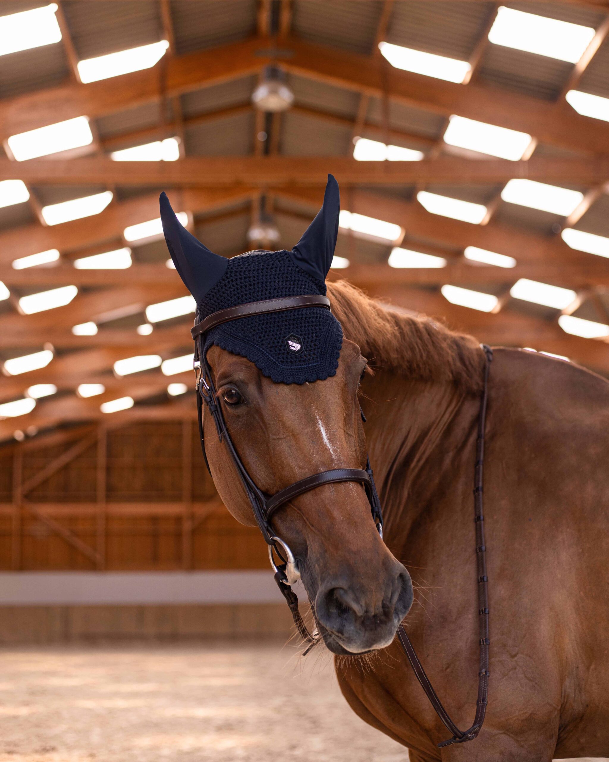 Le bonnet anti-mouches Samshield Strass Flyshield en marine allie protection efficace, confort du cheval et esthétique raffinée. Pensé pour accompagner les cavaliers exigeants en concours comme à l’entraînement, il protège efficacement les oreilles du cheval contre les insectes tout en assurant une parfaite liberté de mouvement.