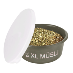 Bol XL pour muesli. Idéal pour les compétitions ou les formations. Protection contre les souris. Utilisable également pour d »autres produits.