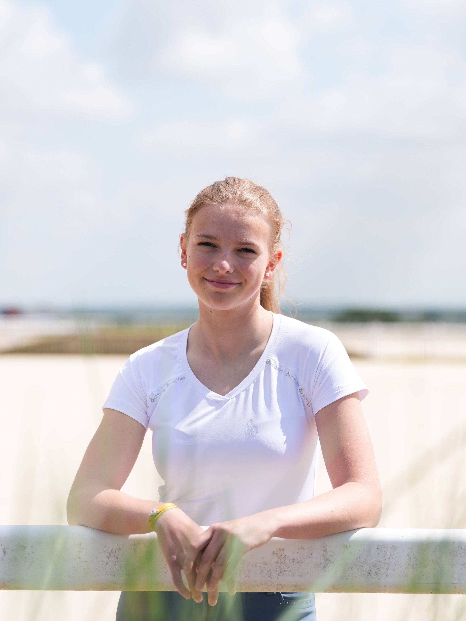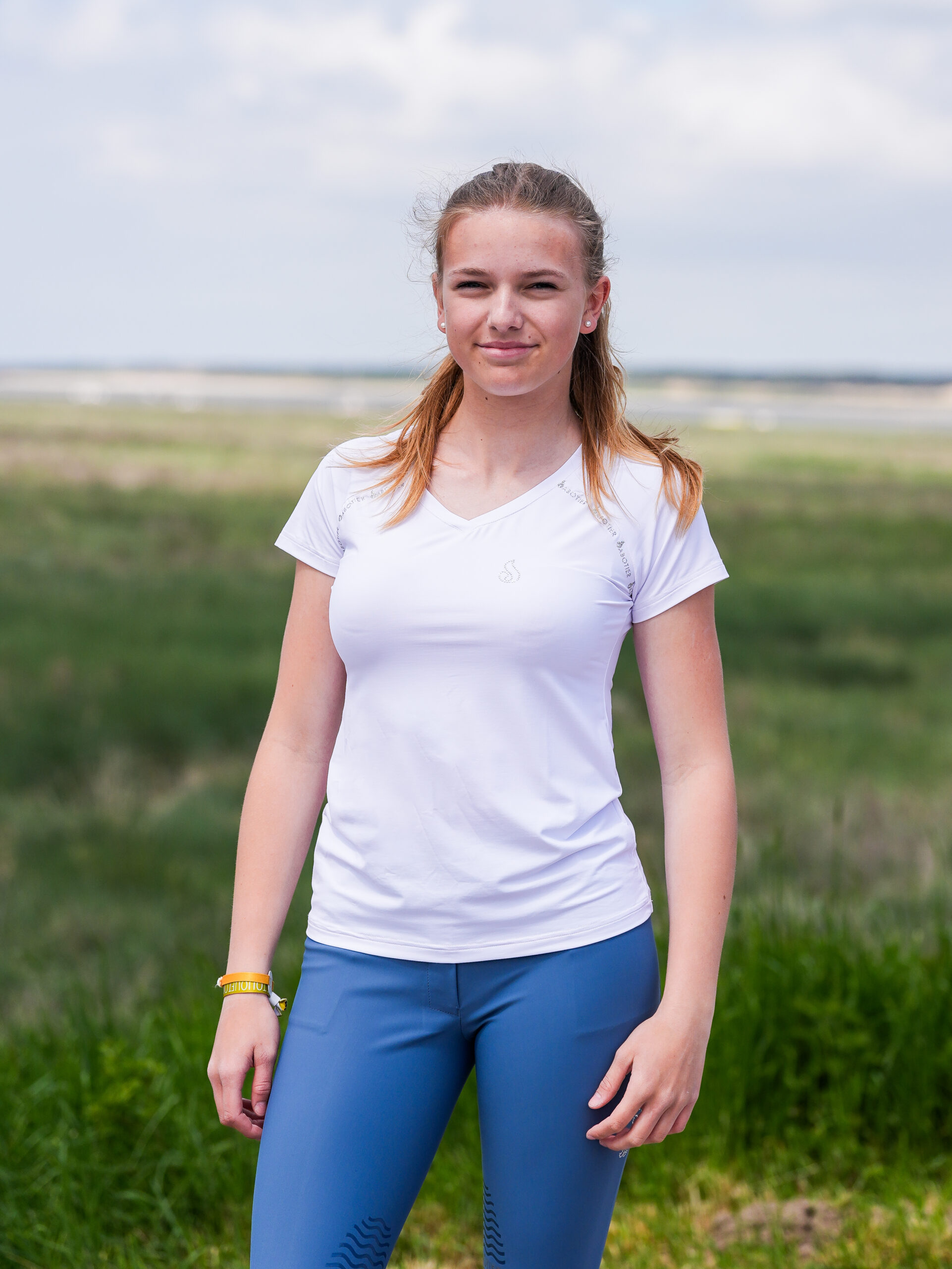 Que vous soyez à cheval, à la maison ou en concours, ce t-shirt équitation femme blanc s’adapte à toutes les situations. Il s’intègre parfaitement dans une garde-robe de mode équestre éthique, pour un look sobre et raffiné.