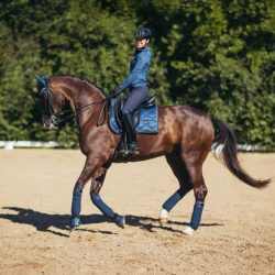 Fabriqué dans un matériau brillant et anti-salissures qui respire bien et garde votre cheval au sec tout au long de la session de transpiration.