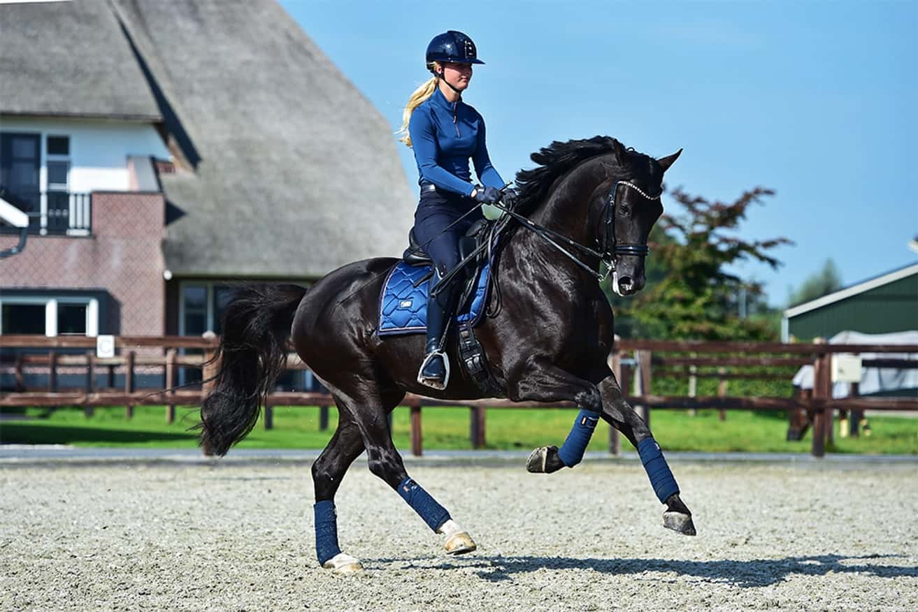 Le tapis de selle est matelassé selon le motif Equestrian Stockholm.