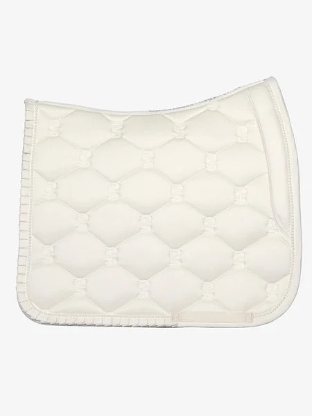 Tapis de selle de forme anatomique, avec reliure à volants et une touche chic grâce aux accents de perles. Comprend une courtepointe emblématique PS et une citation unique le long de la colonne vertébrale.