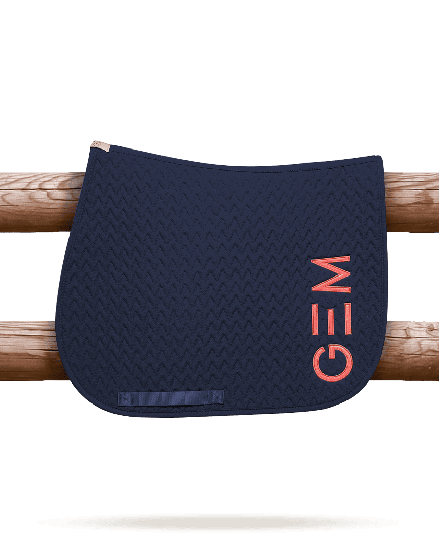 Le tapis de selle GEM Jumping Ten Marine Corail est le choix idéal pour associer performance technique, confort du cheval et style dynamique.