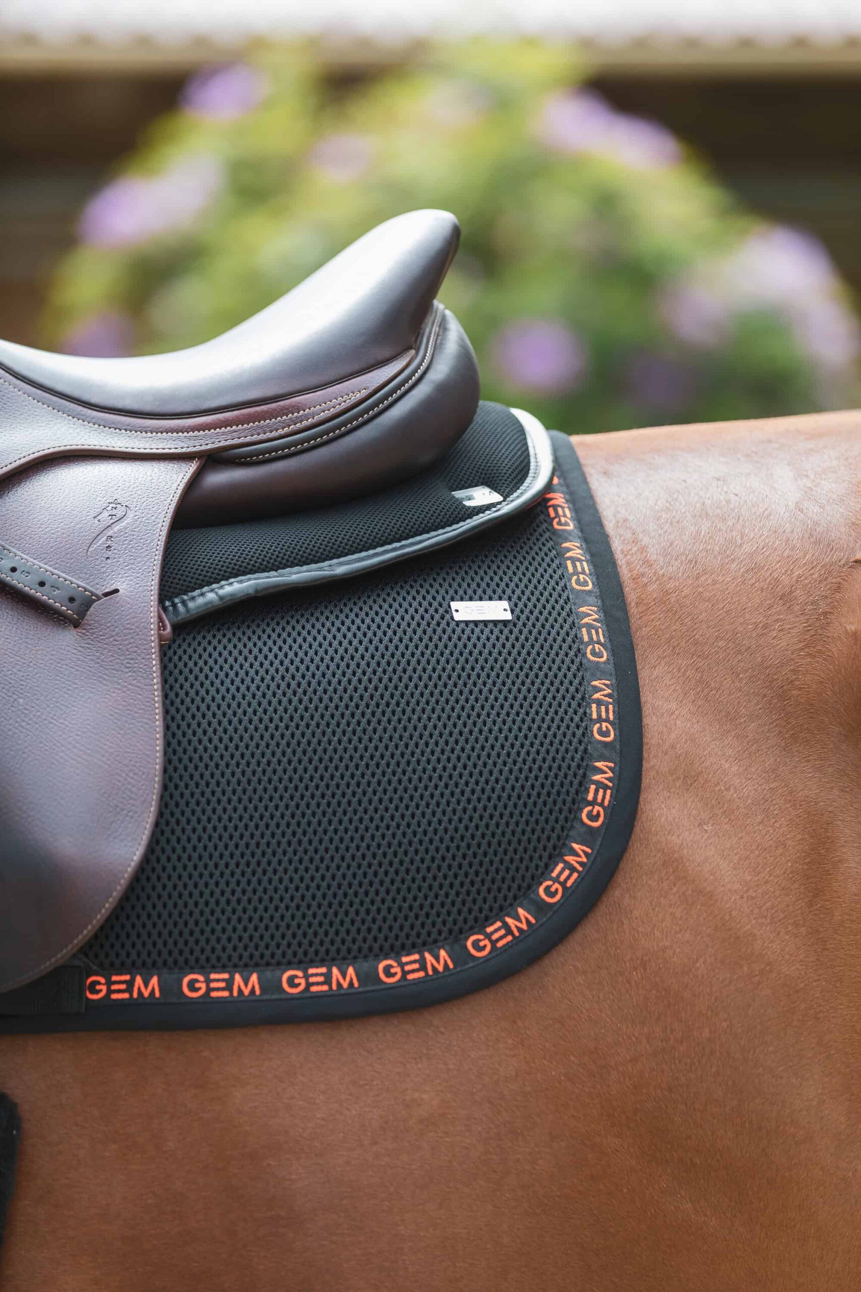 Le tapis Mesh Obstacle Noir / Corail de GEM Équitation est l’alliance parfaite entre technologie de pointe et style affirmé.