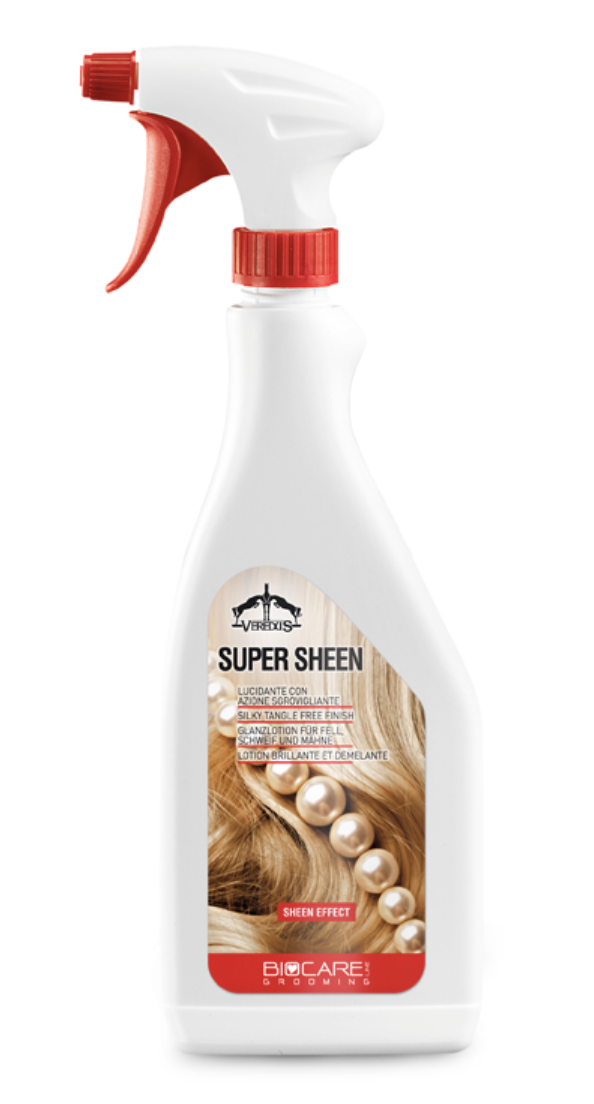 Super Sheen de Veredus est formulé pur les équidés – Tenir hors de portée des enfants – Conserver dans un endroit frais et sec.