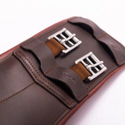 Dans la version obstacle, nous les avons placés à différents niveaux, celui situé à l’avant étant plus bas que celui situé à l’arrière. Cela permet une optimisation de l’ajustement de la sangle au corps du cheval. Les quartiers enveloppent parfaitement le cheval et améliorent ainsi le confort, la stabilité et le contact de la jambe du cavalier avec le corps de l’animal.