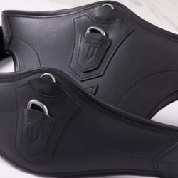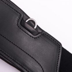 Dans la version obstacle, nous les avons placés à différents niveaux, celui situé à l’avant étant plus bas que celui situé à l’arrière. Cela permet une optimisation de l’ajustement de la sangle au corps du cheval. Les quartiers enveloppent parfaitement le cheval et améliorent ainsi le confort, la stabilité et le contact de la jambe du cavalier avec le corps de l’animal.